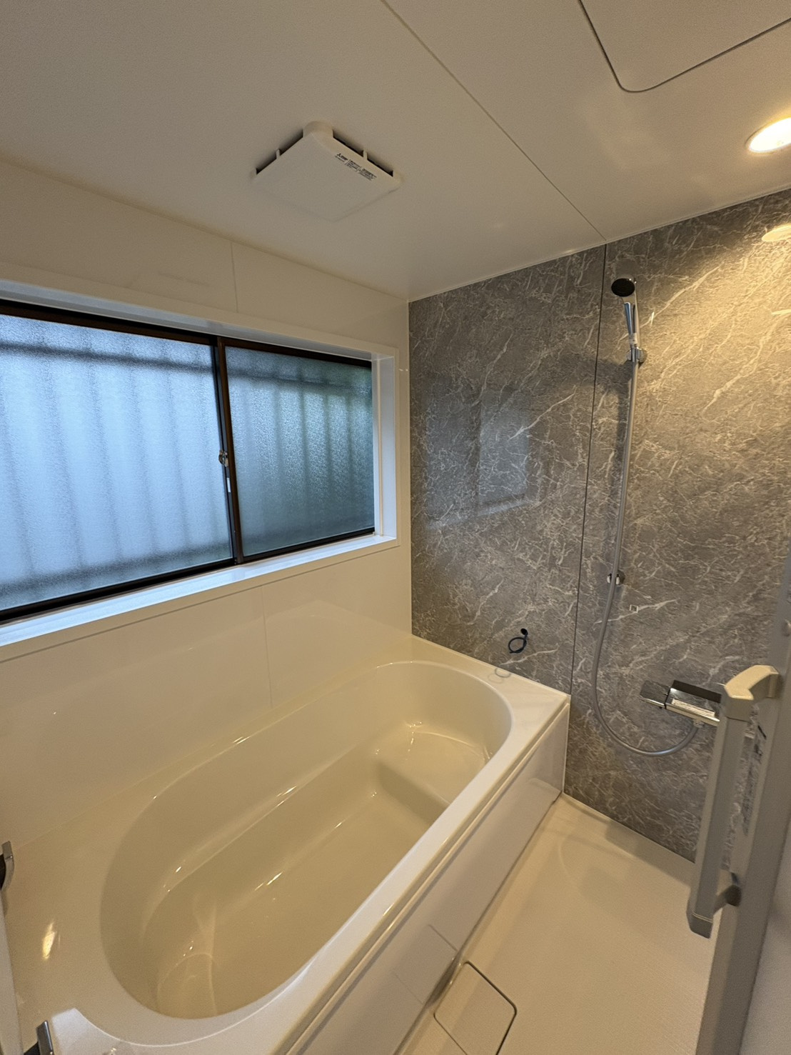 換気のできる大きな窓はそのまま生かしました。お風呂からの湿気が気になるときの換気に便利です◎